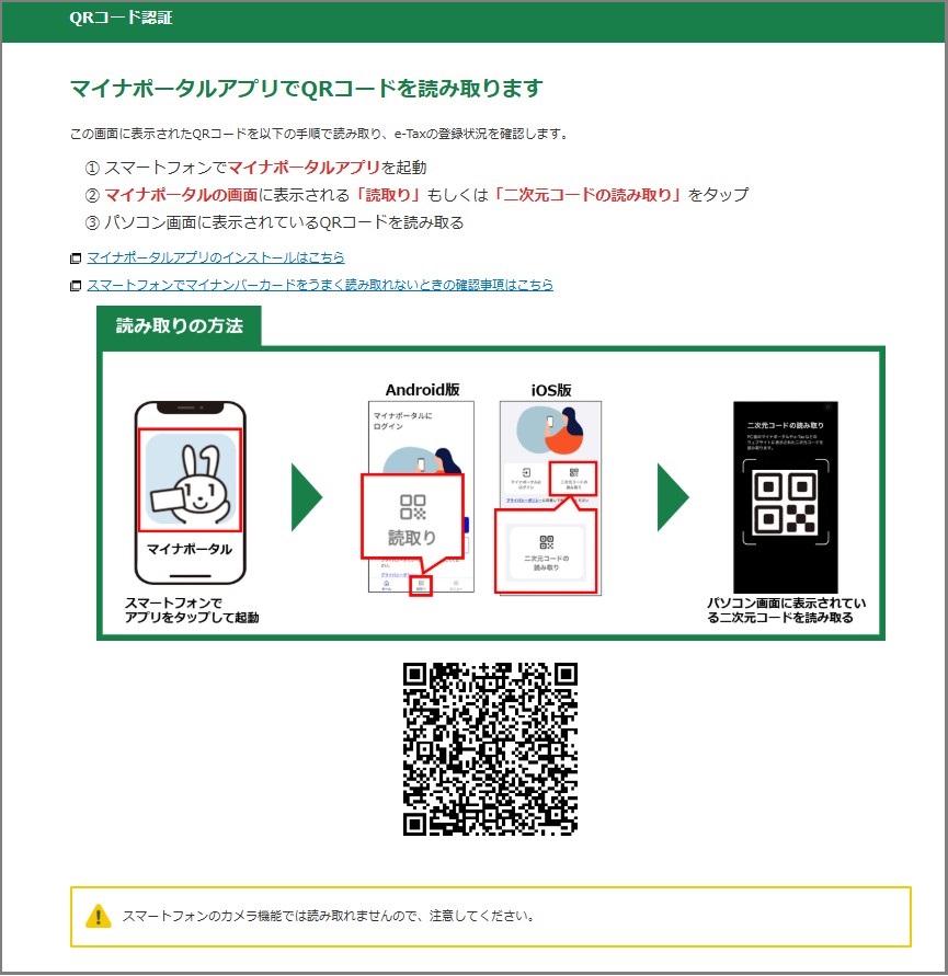 6.お手元のスマホでマイナポータルアプリを開きQRコード読取、マイナンバーカード認証をします