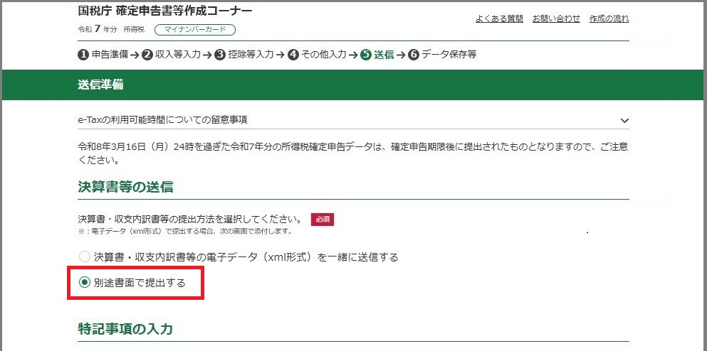 ■決算書等の送信:別途書面で提出する